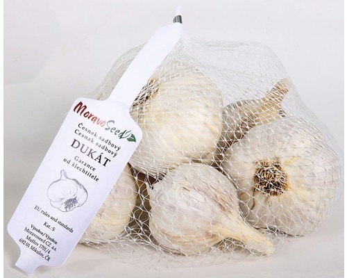 Cesnak sadbový Dukát, je český cesnak. Poloskorá odroda ozimného cesnaku-paličiaku. Sadí sa na jeseň, ale aj na jar. Jesenná výsadba dáva vyššie úrody. Prezimovanie má veľmi dobré. Základná farba sukníc je biela. Počet strúčikov v cibuli je 5-7ks. Strúčiky sú veľké, s vysokým obsahom silíc, je pekne štipľavý, ako má byť cesnak. Je vysoko odolný voči virózam. Skladovateľnosť je vynikajúca, pri dobrých podmienkach skladovania vydrží do novej úrody.Poloskorá odroda ozimného cesnaku-paličiaku. Odroda českého cesnaku, vhodná aj pre slovenské podmienky pestovania. Hmotnosť je udávaná v čase balenia.
