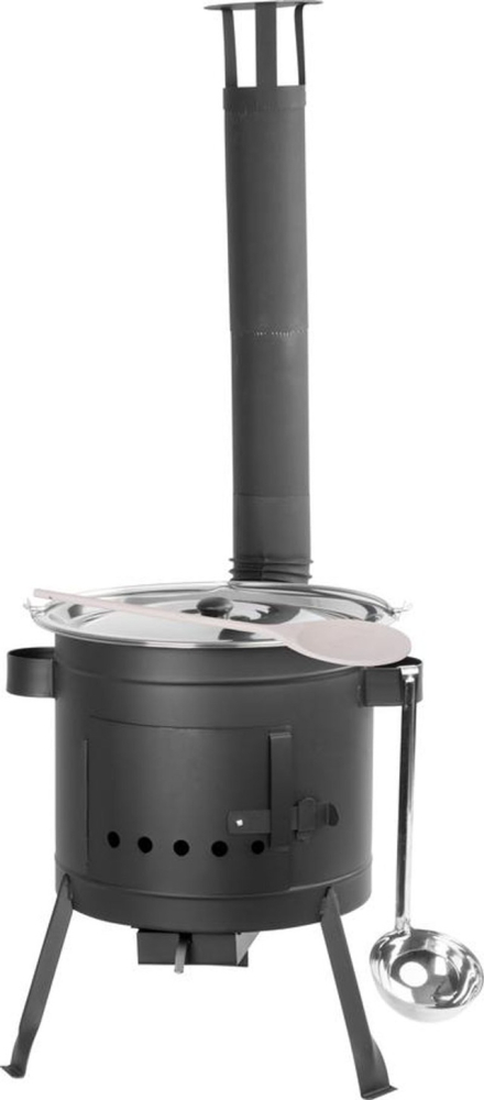 S kotlíkovou súpravou PartySet s objemom kotlíka 22 litrov môžete variť chutné guláše, kapustnice, perkelty a ďalšie tradičné jedlá ako pretlak, lekvár či pripraviť oškvarky. Je vyrobená z kvalitného plechu so žiaruvzdorným náterom. V balení nájdete kompletnú súpravu bez nutnosti dokupovania príslušenstva.Sada obsahuje:1 ks železná Párty kotlina (priemer 42 cm, výška 56 cm) so žiaruvzdorným náterom, železná nádoba na popol - 1 ks dvojdielny železný dymovod s priemerom 10 cm, železná strieška, železné koleno - 1 ks nerezový kotlík 22 litrový, 1 ks nerezová pokrievka - 1 ks nerezová naberačka a 1 ks drevená varecha .Dôležité upozornenia:Kotlina aj príslušenstvo sa pri používaní zohreje, preto vždy používajte kuchynskú chňapku! Držte ďaleko od detí! Uistite sa, že kotlina stojí na pevnom a vodorovnom teréne! Nepoužívajte v uzatvorenom priestore! Nenechajte bez dozoru počas používania!